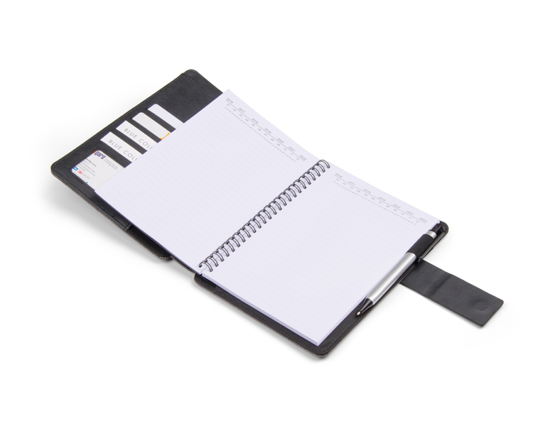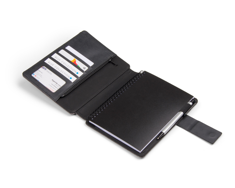 Wykonane z lnu zewnętrzne pokrycie teczki CARLIS posiada dwie kieszonki na telefon i pamięć USB. W środku znajduje się wymienny notes A5 (50 kartek w linie), duża kieszeń zamykana na zamek, miejsce na długopis oraz 4 małe kieszonki w tym 1 z okienkiem. Teczka zamykana jest za pomocą magnetycznego zatrzasku. Umieszczona na zatrzasku metalowa płytka pozwala na wykonanie efektownego grawerowania, który z pewnością podkreśli elegancki charakter teczki.