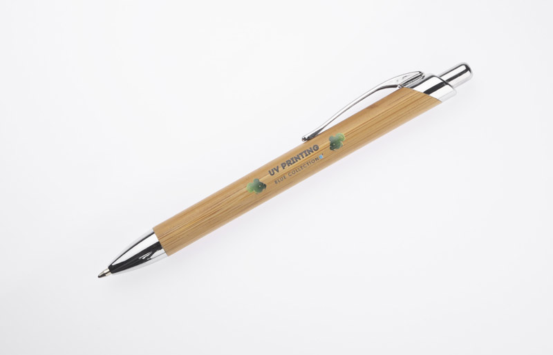 Stylowy długopis z bambusowym korpusem. Niezwykle przyjemna w dotyku faktura drewna z pewnością zwróci uwagę każdego klienta. Długopis jest wykończony metalowymi elementami w kolorze srebrnym. Znakowanie możliwe na bambusowym korpusie.