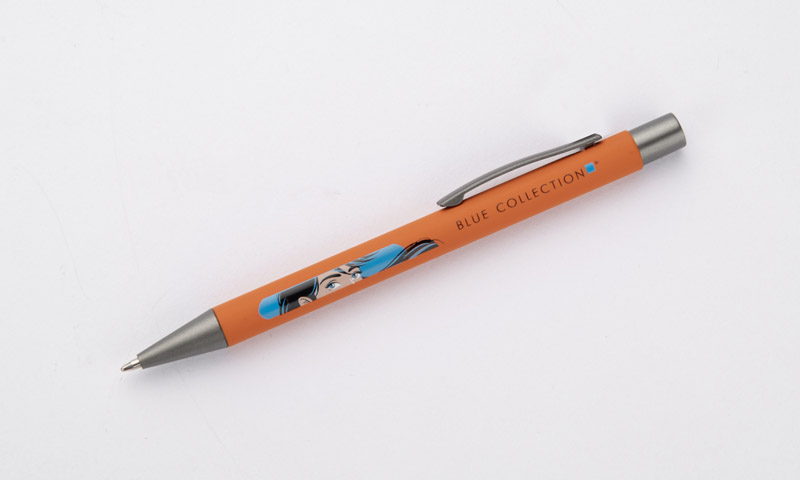 Długopis GOMA to prosty design połączony z przyjemna w dotyku gumowana powierzchnią. Całość jest utrzymana w lekkich, matowych barwach. Wykonany z aluminium. Wykończenia w kolorze grafitowym. Wkład w kolorze niebieskim.