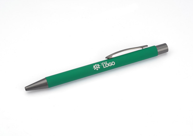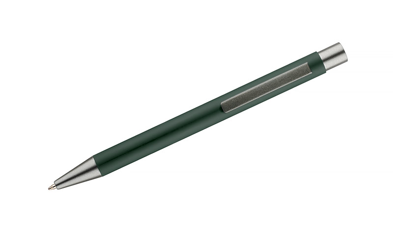 Długopis GOMA to prosty design połączony z przyjemną w dotyku gumowaną powierzchnią. Całość jest utrzymana w lekkich, matowych barwach. Wykonany z aluminium. Wykończenia w kolorze grafitowym. Wkład w kolorze czarnym.