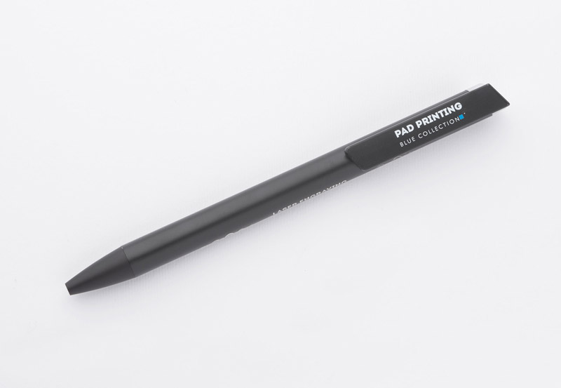 ALI to wyjątkowy długopis umożliwiający wykonanie znakowania w kolorze zbliżonym do końcówki długopisu oraz całkowicie zaskakującego grawerowania w dwóch kolorach - w kolorze zbliżonym do końcówki długopisu oraz białym (kolor aluminium). Czarny metalowy korpus oraz czarne wykończenia stanowią idealne tło dla kolorowego grawerowania. Długopis automatyczny. Wkład typu X20 o grubości 1.0 mm w kolorze niebieskim.