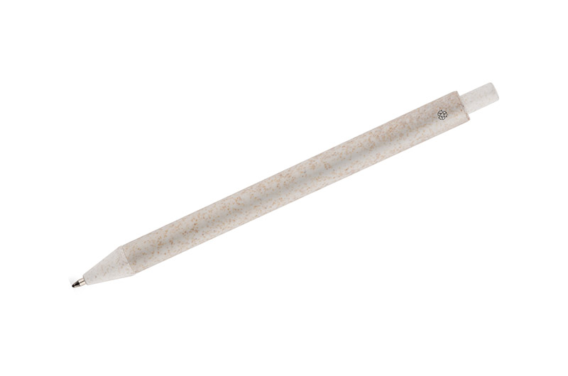 Długopis REVI został wykonany z myślą o wszystkich, którym bliska jest idea redukowania odpadów z tworzywa sztucznego. Tradycyjne tworzywo sztuczne zostało zastąpione specjalnym materiałem wykonanym w 40% z naturalnej słomy. Klasyczny, prosty kształt czyni go uniwersalnym gadżetem. Długopis automatyczny. Wkład typu X20 w kolorze niebieskim.