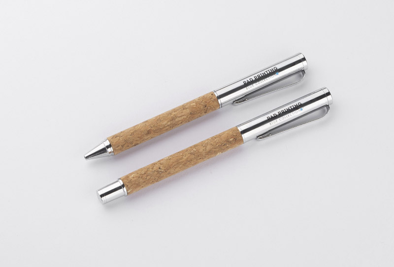 KANSAS to elegancki zestaw piśmienniczy dla miłośników naturalnych materiałów przyjaznych środowisku. W zestawie znajduje się długopis oraz pióro kulkowe wykonane z metalu oraz korka. Gustowne etui w kolorze czarnym ozdobione elementem korkowym. Długopis z mechanizmem typu twist, z czarnym wkładem, pióro kulkowe z zatyczką, z wkładem w kolorze czarnym.