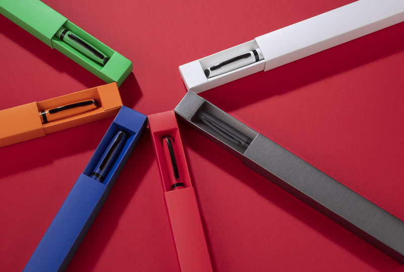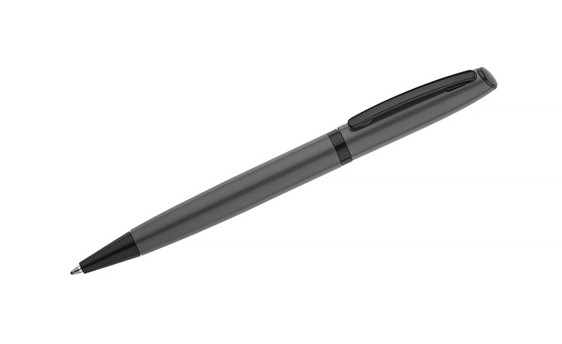 RIO to elegancki długopis zapakowany w papierowy kartonik dopasowany kolorystycznie do obudowy długopisu. Matowy kolor ładnie kontrastuje z czarnymi wykończeniami. Długopis z mechanizmem typu twist, z wkładem typu G2 w kolorze niebieskim.
