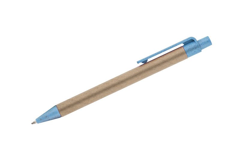 Długopis TIKO wykonany został z myślą o ponownym wykorzystaniu surowców. Jego korpus wykonany jest z papieru po recyklingu, a końcówki z tworzywa z domieszką słomy, która ogranicza ilość tworzywa sztucznego potrzebnego do produkcji. Prosty, ponadczasowy wzór. Długopis automatyczny. Wkład typu X20 w kolorze niebieskim.