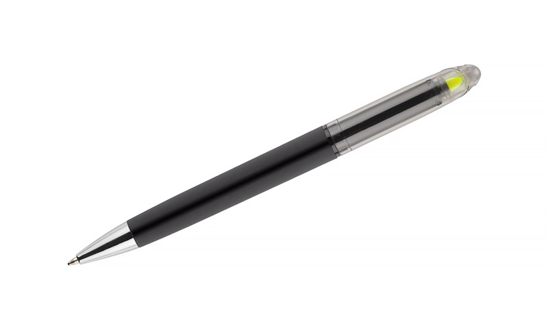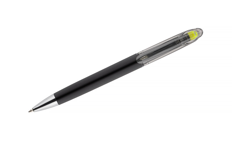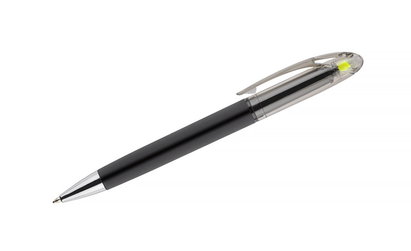 HILIG to dwa przydatne gadżety w jednym. Na górze tradycyjnego długopisu został umieszczony zakreślacz w żywym kolorze. Pokryty gumową powłoką korpus długopisu jest niezwykle przyjemny w dotyku. Długopis z mechanizmem typu twist, wkład długopisu w kolorze niebieskim.