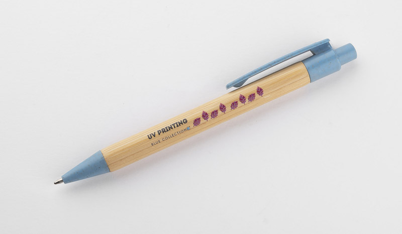 BAMMO to klasyczny długopis wykonany z materiałów przyjaznych środowisku. Bambusowy korpus połączony został z wykończeniami z tworzywa wykonanego w 50% ze słomy. Długopis automatyczny, wkład w kolorze niebieskim.