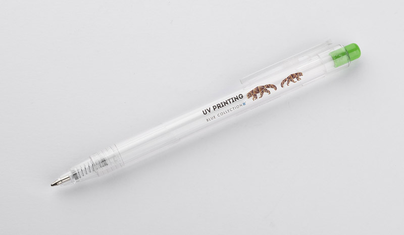 Długopis KLIIR powstał w całości z tworzywa PET po recyklingu (rPET). Ten prosty gadżet pokazuje nam, jak świadomie możemy gospodarować odpadami z tworzywa sztucznego i tworzyć z nich nowe przydatne przedmioty. Przezroczysty bezbarwny korpus długopisu ładnie połączony jest z przyciskiem w żywych kolorach. Długopis automatyczny, wkład typy G2 w kolorze niebieskim.