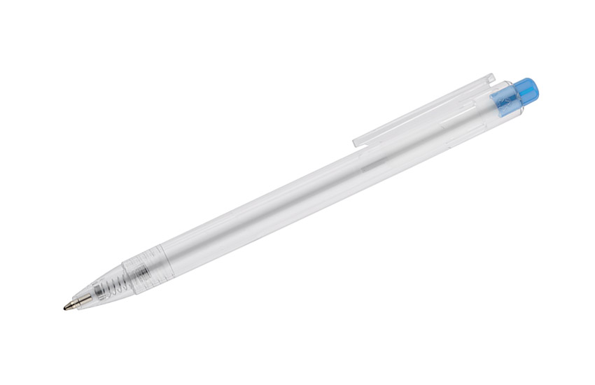 Długopis KLIIR powstał w całości z tworzywa PET po recyklingu (rPET). Ten prosty gadżet pokazuje nam, jak świadomie możemy gospodarować odpadami z tworzywa sztucznego i tworzyć z nich nowe przydatne przedmioty. Przezroczysty bezbarwny korpus długopisu ładnie połączony jest z przyciskiem w żywych kolorach. Długopis automatyczny, wkład typy G2 w kolorze niebieskim.