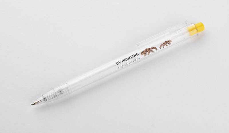 Długopis KLIIR powstał w całości z tworzywa PET po recyklingu (rPET). Ten prosty gadżet pokazuje nam, jak świadomie możemy gospodarować odpadami z tworzywa sztucznego i tworzyć z nich nowe przydatne przedmioty. Przezroczysty bezbarwny korpus długopisu ładnie połączony jest z przyciskiem w żywych kolorach. Długopis automatyczny, wkład typy G2 w kolorze niebieskim.