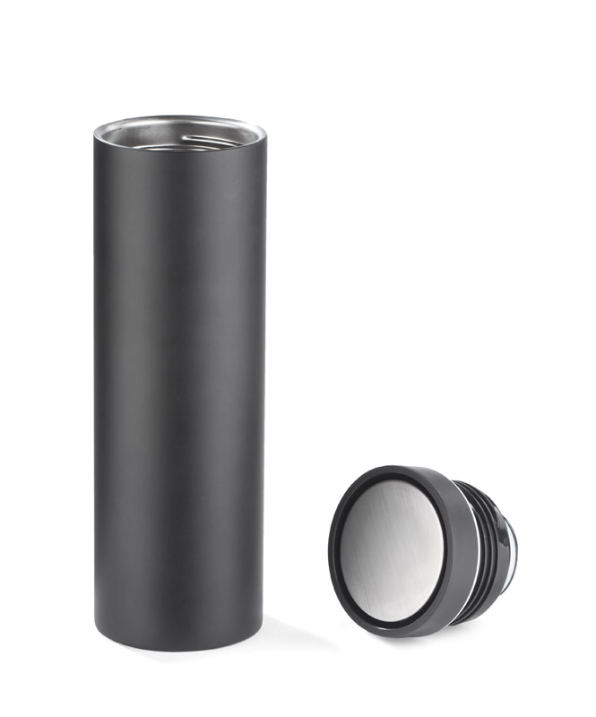 Wygodny kubek wykonany ze stali. Wnętrze wykonane ze stali nierdzewnej o podwyższonym standardzie. Pojemność 440 ml. Interesująca budowa naciskanego zamknięcia pozwala na picie z każdej strony oraz zapewnia bardzo wysoki poziom szczelności. Utrzymuje temperaturę do 13 godz. Kubek posiada dno antypoślizgowe.
