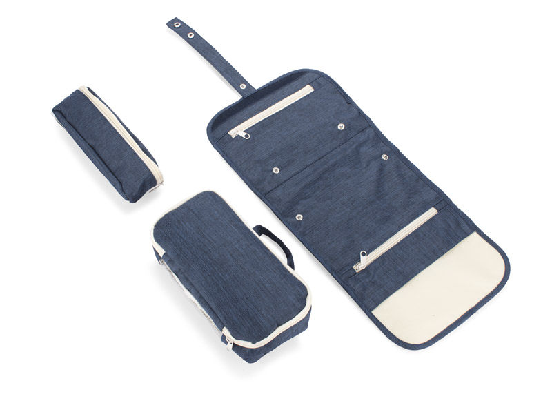 Rozwijana kosmetyczka ROLLI sprawdzi się w każdej podróży. Kosmetyczka wyposażona jest w dwie mniejsze odpinane saszetki, w kieszonkę zamykaną na zamek oraz uchwyt umożliwiający przyczepienie kosmetyczki w łazience np. do wieszaka na ręcznik. Kosmetyczka wykonana z przyjemnego dwunitkowego poliestru 300D.