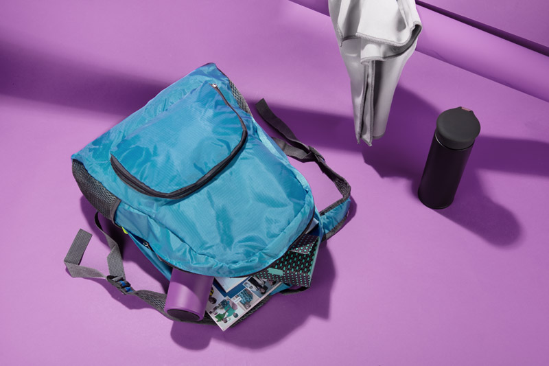 Funkcjonalny plecak, który można złożyć do niewielkich rozmiarów. Posiada jedną wewnętrzną kieszeń oraz trzy zewnętrzne - jedną zapinaną na zamek oraz dwie siateczkowe. Plecak wykonany z poliestru.