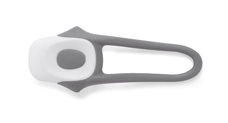 Praktyczna lampka rowerowa z dwoma diodami LED oraz silikonowym mocowaniem do roweru. Lampka tylna - posiada czerwone diody.